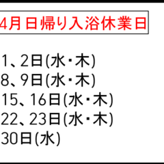 2026年4月の日帰り入浴休業日